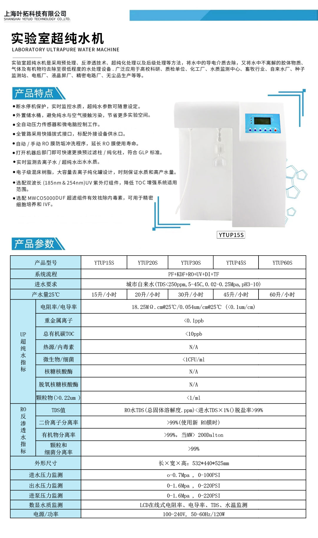 上海葉拓 YTUP30S 標(biāo)準(zhǔn)型純水機(jī)