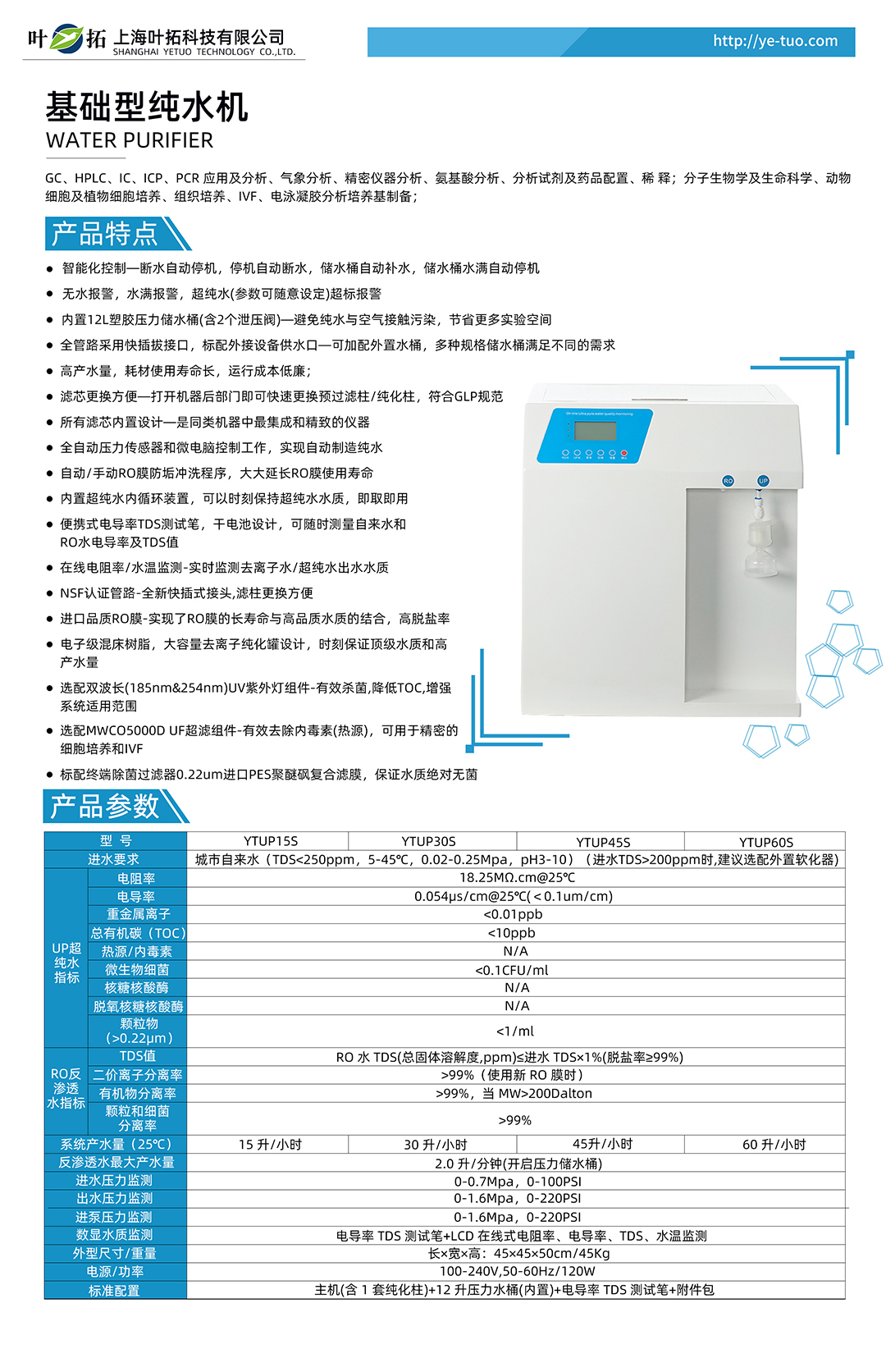 上海葉拓 YTUP60S 標準型純水機