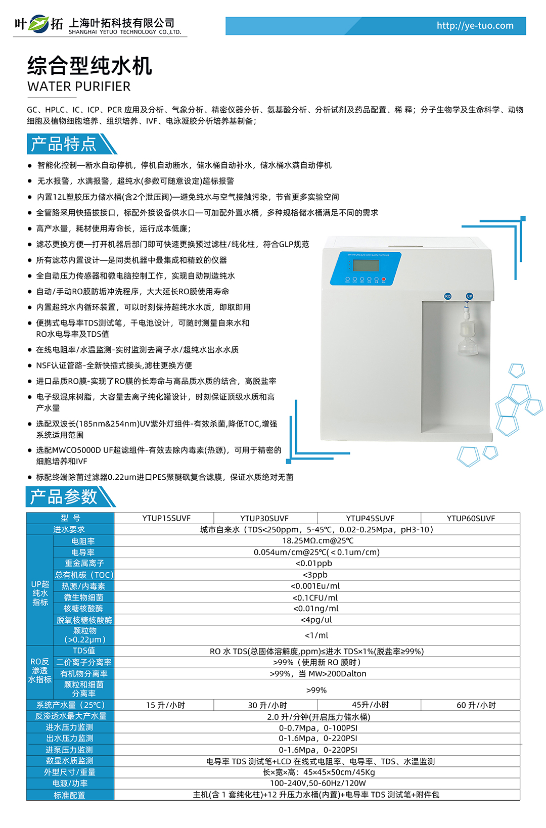 上海葉拓 YTUP15SUVF 綜合型純水機(jī)