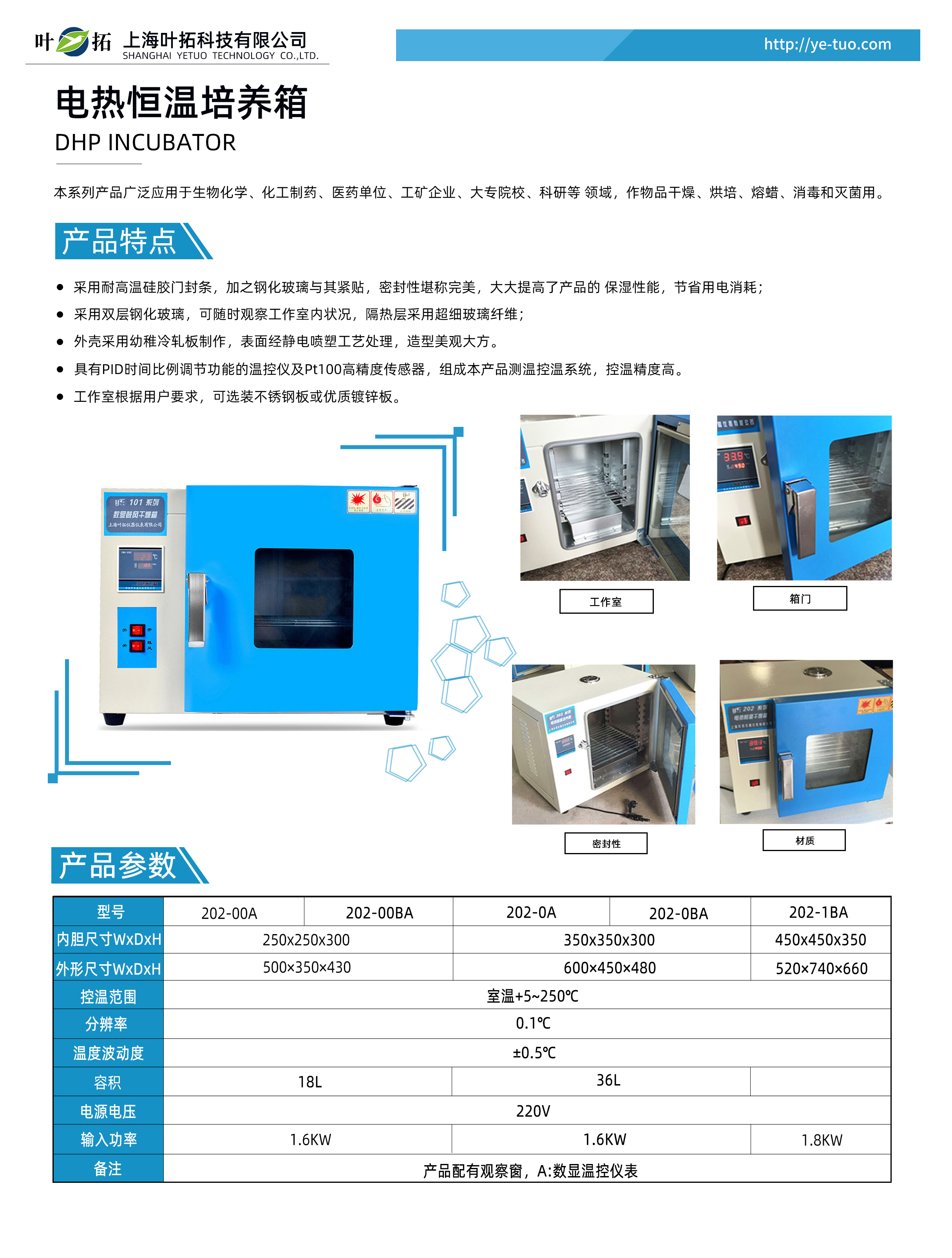 葉拓202系列自然對流干燥箱產品特點
