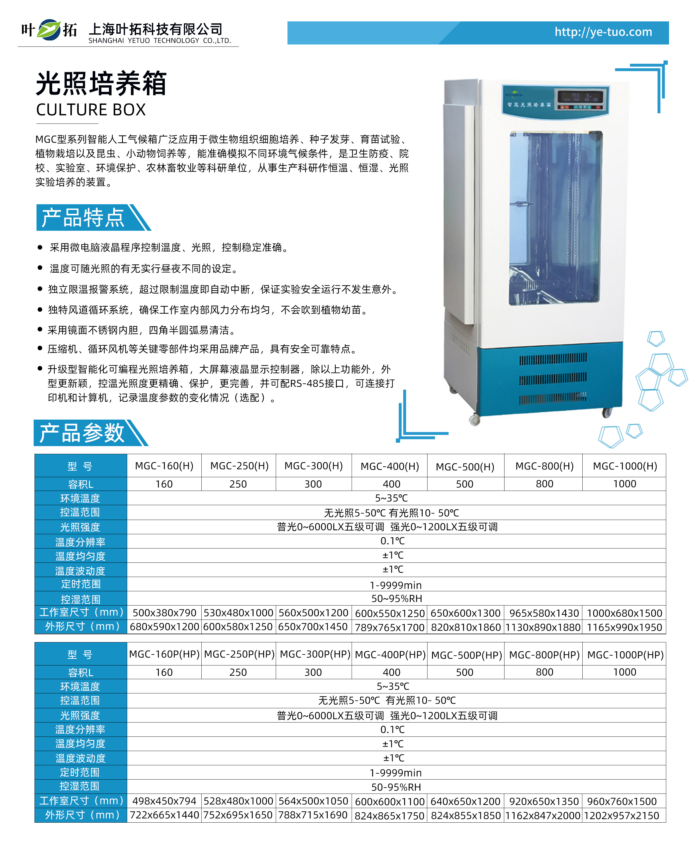 葉拓MGC人工氣候培養(yǎng)箱/光照培養(yǎng)箱產品特點
